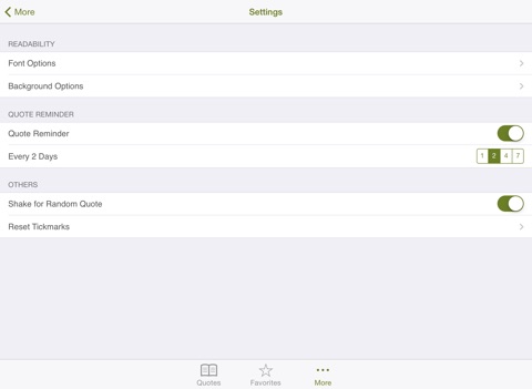 • EASY NAVIGATION (swipe right/left to next and previous quotes;