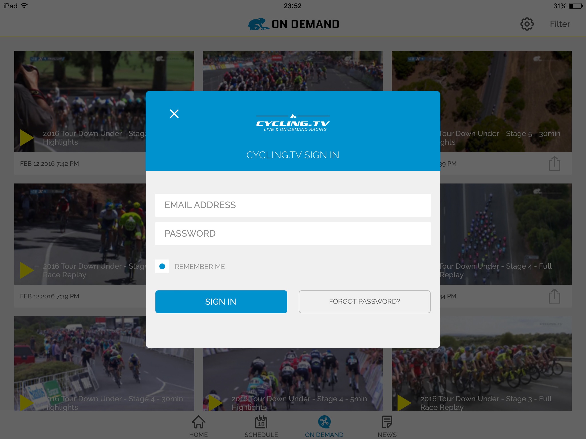 At home, at work, or at the top of an hors catégorie climb, the Cycling.TV App gives you access to some of the very best in pro-cycling, including the UCI World and Europe Tours, with live coverage and on-demand highlights. Get notifications direct to your device when new content is available and get alerts for live races - all with the best English-language commentary in the business.