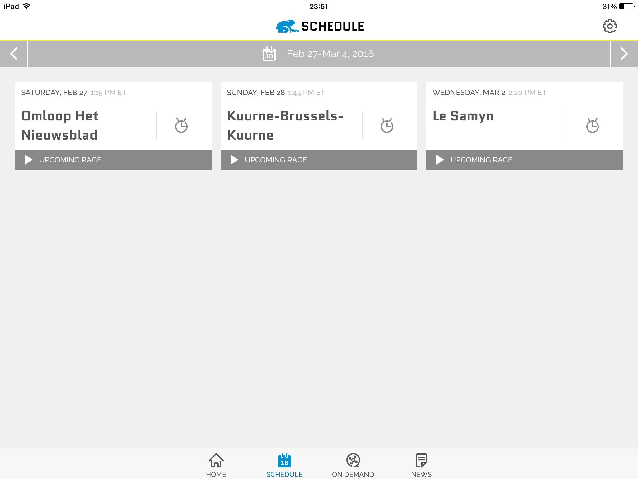 - Push notifications for live races and highlights