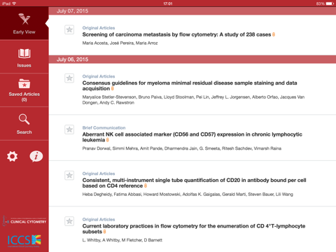 CURRENT SUBSCRIBERS to Cytometry Part B Clinical Cytometry can “pair” their device with their personal or institutional subscription to enjoy full access in this iPad edition.
