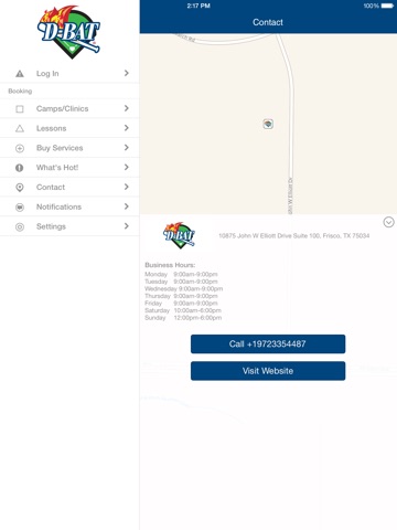 Download the D-BAT App today to plan and schedule your Lessons, Cage Rentals, Camps & Clinics right from your iPhone! From this iPhone App you can view schedules, sign-up for camps & classes, view ongoing promotions, as well as view your local D-BAT Academy location and contact information. You can also click through to our Facebook and Twitter pages! Browse your favorite Instructors schedules. Optimize your time and maximize the convenience of signing up for Lessons, Camps/Clinics and Cage Rentals from your iPhone! Download this App today!