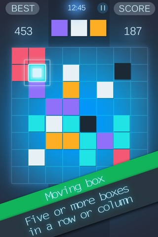 If these boxes connect four or more in a row or column, they will be destroyed and disappear. On the other hand, if you cant connect any boxes to the one you held down on, three more boxes will add on.
