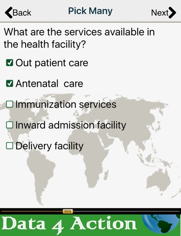 Data 4 Action is a survey tool. It will facilitate you to conduct surveys and make available data for action. It allows you to conduct from big surveys to small surveys depends on your need. There are standard sample surveys available on different areas on health such as Emergency facility assessment in Emergency, Pocket EVM, Rapid Cold chain inventory etc. Personal support available if you plan to conduct any quick survey to collect data for action.