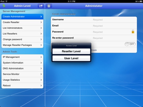 Administrator account creation, listing, modification, and deletion is done quickly and easily.