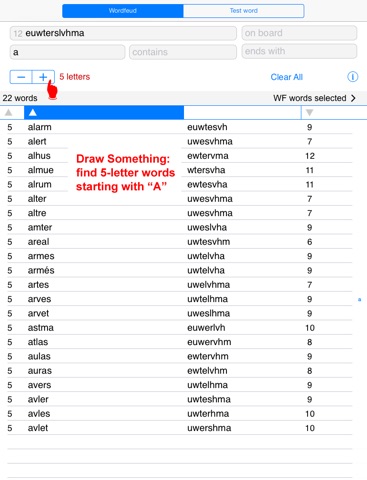 The word length selector is handy to find words for Draw Something.