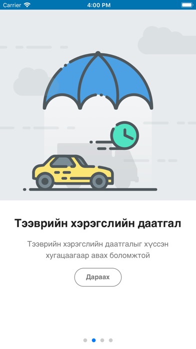 Дурын даатгалын компанийг сонгон хаана, хэзээ байхаас үл хамааран Тээврийн хэрэгслийн даатгал болон Жолоочийн хариуцлагын даатгалаа хийлгэх боломжтой аппликэйшн.