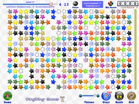 Touch an empty grid to match at least two same-coloured hearts in the cross line. Wrong touches will lead to timing deduction.Dont forget to use the items!