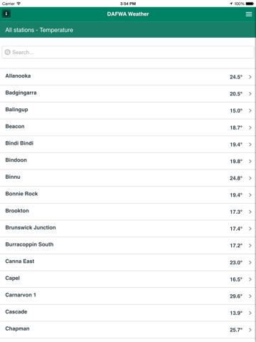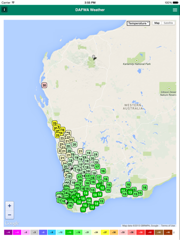 The DAFWA Weather stations application draws on live data from more than 130 weather stations between the Kimberley and the South Coast of Western Australia. Also included are five stations within the metropolitan area of Perth.