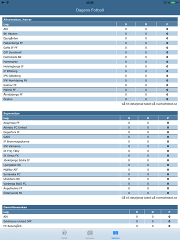 Tabeller för Allsvenskan, Damallsvenskan samt Superettan.