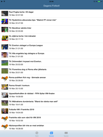 En samling av fotbollsnyheter från de viktigaste fotbollsajterna listas i en speciell vy där du får en enkel överblick.