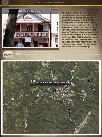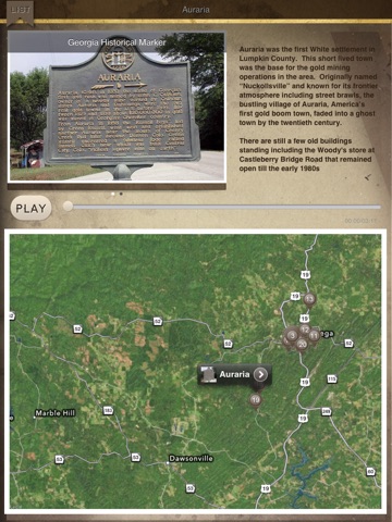 This app is a voice narrated, GPS guided walking and driving tour of Dahlonega and Lumpkin County. The stories are of gold miners turned soldiers, who returned home to build the city and surrounding counties. Stories of everyday men doing great things are revealed in this tour back in time. Along with compelling stories and rare photos, you will see the homes the men lived in, the buildings they built and the land that they loved.