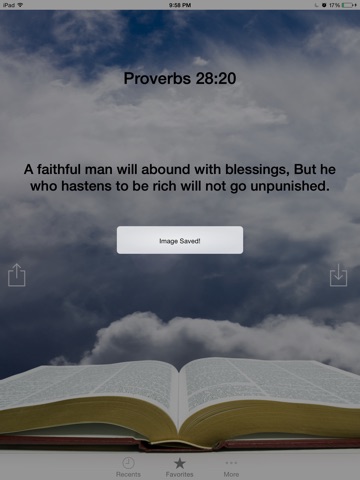 - Download the background image with the Bible verse added in it, which you can share and upload to your Instagram or Facebook account. You can even set it as a wallpaper. Image will be saved into your Photo Album