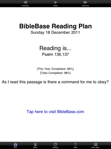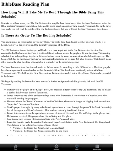 The BibleBase Daily Bread App is a Bible reading schedule based on a 3 year cycle including a built-in copy of the King James Bible.