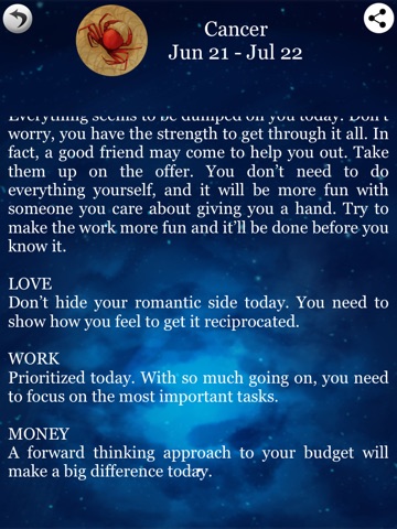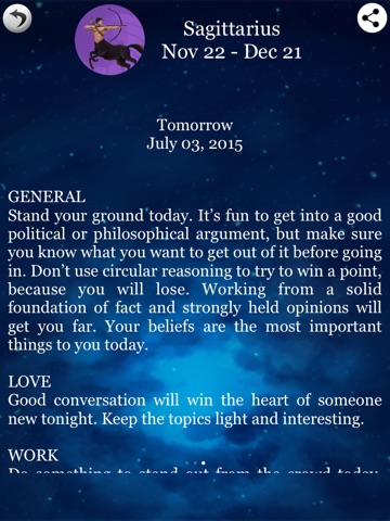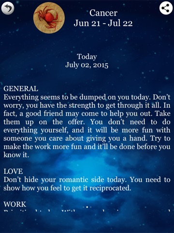- Share your daily horoscope with your friends and family on Facebook, WhatsApp, Twitter, etc