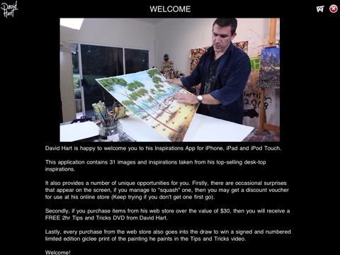 With this app, you also get a hidden voucher for a 5% discount on any purchases from shop.davidhart.com.au, AND all purchases from shop.davidhart.com.au go into the draw to win one of 24 limited edition signed giclee prints!