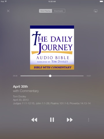The narration and commentary are great. I also like the way you can choose between starting at day #1 no matter the date, or following the predefined readings by date. I would really like it if you could navigate by book and chapter (rather than by day) and have the audio run continuously until you stop it. Of course, for this to work well, the history would have to display what youve read in terms of books and chapters as well.
