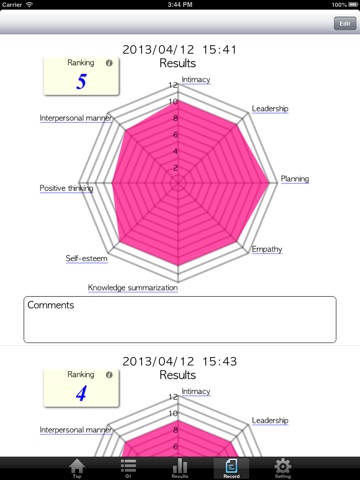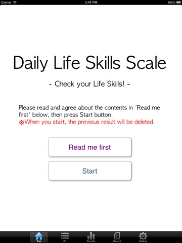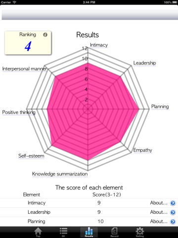 >This is the simple scale which estimate each element of Life Skills from 3 question items, then it is not proper to overestimate the result. Please evaluate this result as one data to grasp your level of skills.