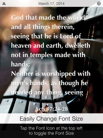 Every day you’ll see a new verse, with the ability to see previous days’ verses.