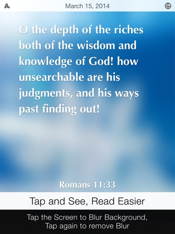 The scripture says "taste and see", now "tap and see". Tap the screen to blur the background image, making reading easier: tap again to remove the blur - it is that simple.