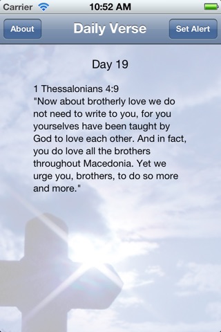 Receive a different daily verse about love every day for a year. You can set a custom reminder to show you your verse at the same time every day.