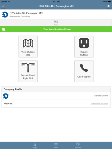 The Dakota Electric Association app lets you quickly report a power outage without making a phone call. You can also receive outage updates and view the outage map easily from your mobile device. Customize the alerts you receive and how you receive them. Easily report burned out streetlights by standing near the streetlight and clicking the report button. Once you receive the pairing code from Dakota Electric, you can report outages and receive updates specific to your account. You can also manage multiple accounts from this one app.