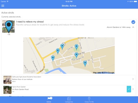 Note: Continued use of GPS running in the background can dramatically decrease battery life. To exit a stroll and shut down GPS, go the Strolls page and de-select any active strolls.