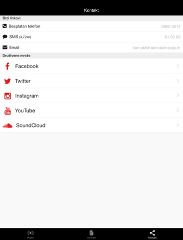 Listen to Radio Dalmacija wherever you are. Read the latest news from Croatia and the rest of the world directly from the app. Browse through our social media profiles like Facebook, Twitter and Instagram or listen to the audio tapes on our SoundCloud and YouTube channel.