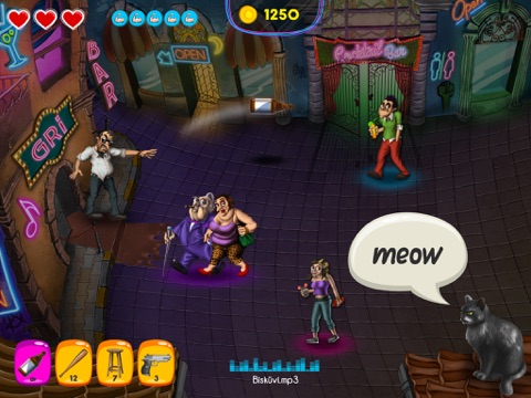 Waves of customers are coming to your bar, night after night. Couples and single ladies are always welcome, but somebody has to keep those single guys at check. Defend your bar with everything you have; use bottles, bats and even stools to keep those single guys at bay.