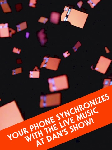 At Dan Deacons live shows, this app synchronizes all the phones in the room, turning you and the rest of the audience into the light show and sound system for the concert! This is all done WITHOUT THE USE OF ANY WIFI OR DATA! This revolutionary effect creates a stunning and unique environment. For the first time, having your phone out at a concert is not a jerk move.