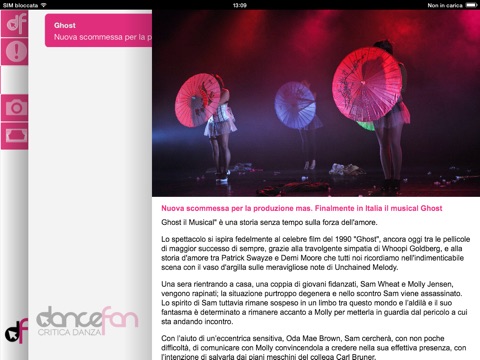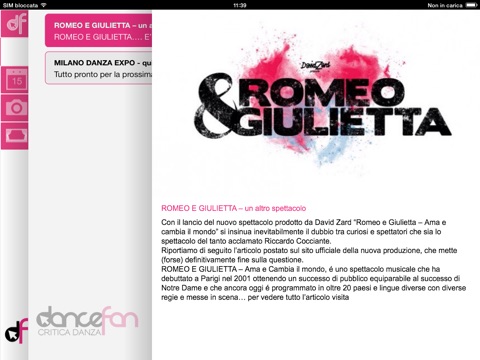 Il portale è diviso in più sezioni per la categoria danza : Spettacoli, Concorsi, Stage, Audizioni, Rassegne, Expo e Festival. Inoltre sarà possibile consultare i consigli degli esperti e leggere le recensioni della nostra redazione sugli spettacoli in cartellone nei teatri di tutta Italia!