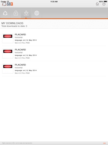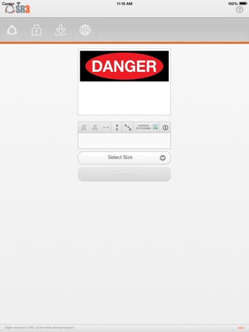 In this application you will be able to download S3 Danger Safety Signs according to their requirement by explanatory text and pictogram associated with imminent risk that should be indicated, as well as will be able to select the size and will obtain a pdf file.