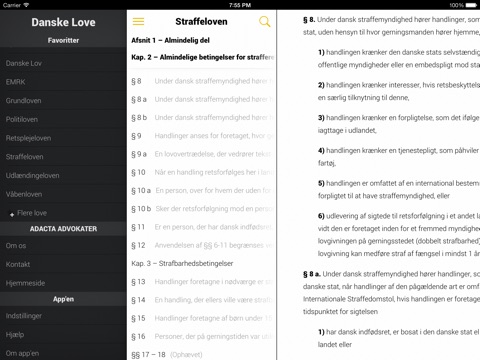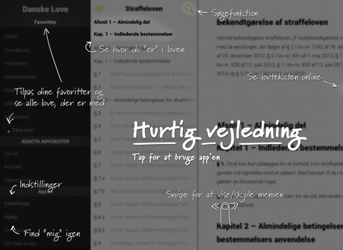 Få lynende hurtig, flot og overskuelig adgang til over 70 af de mest brugte danske love.