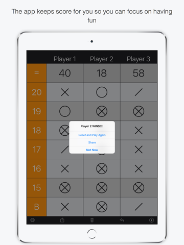 Love the app but would like to see "wildcard cricket" where the target numbers keep changing until someone has locked in that number...please entertain the thought of adding this feature!!!