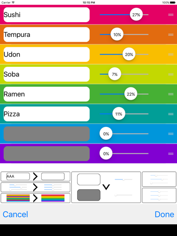Right upper button:Set % for random.