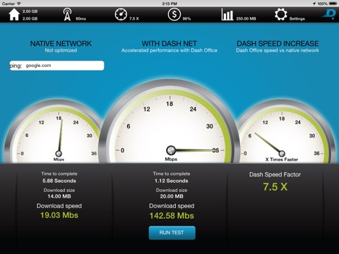 DashNet allows you to monitor network quality of your data connection wherever you go, and accelerate your devices performance through cloud secured network.