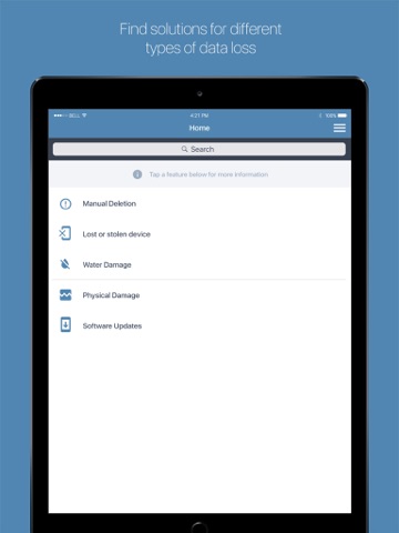 This app will guide you through the process of recovering your data if you have lost your data through any of these problems.