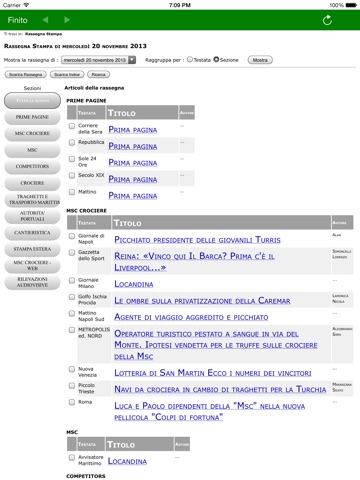 Lettura della Rassegna Stampa dei giornali secondo specifiche di lettura.