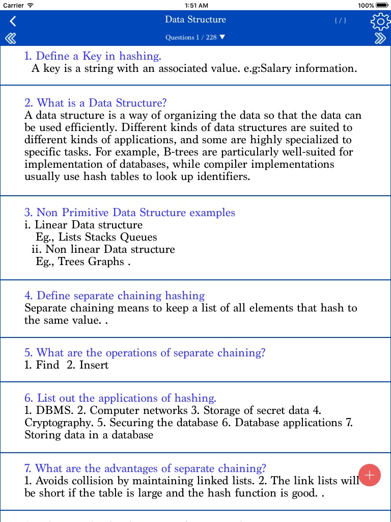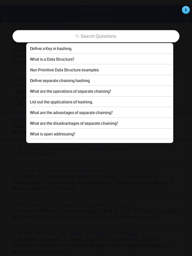 This an application that has many frequently asked Data Structure Interview questions with answers. Gathered from numerous sources including real interviews. Great for both an interviewer to quickly come up with questions. Great for brushing up technical interview questions before an interview.