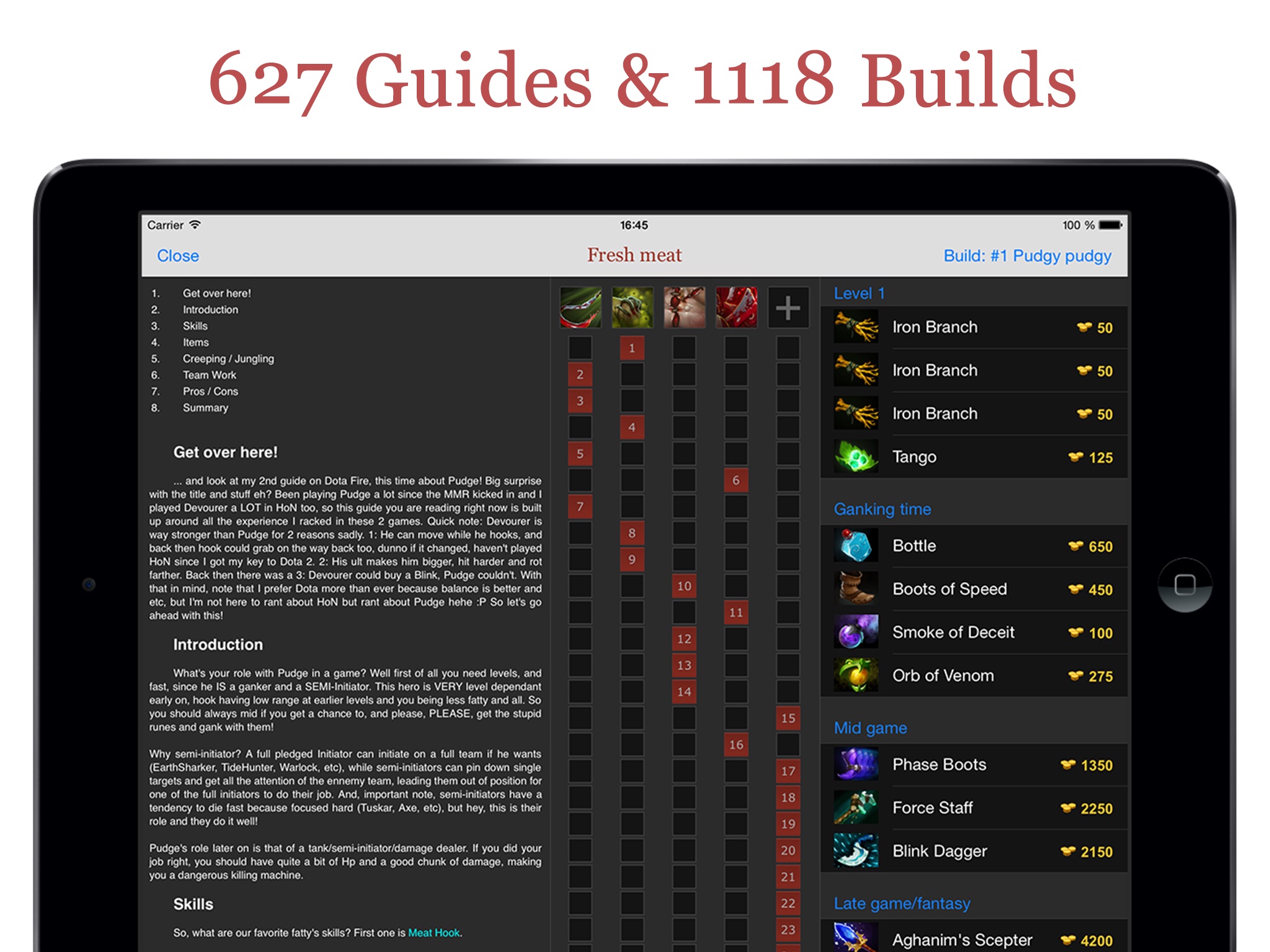 - look and polish could use a bit of work - no way to make builds - no good search for items and heroes - links in the guides dont do anything The Dota 2 companion app is a nice complement to this app, neither stands perfectly on its own.