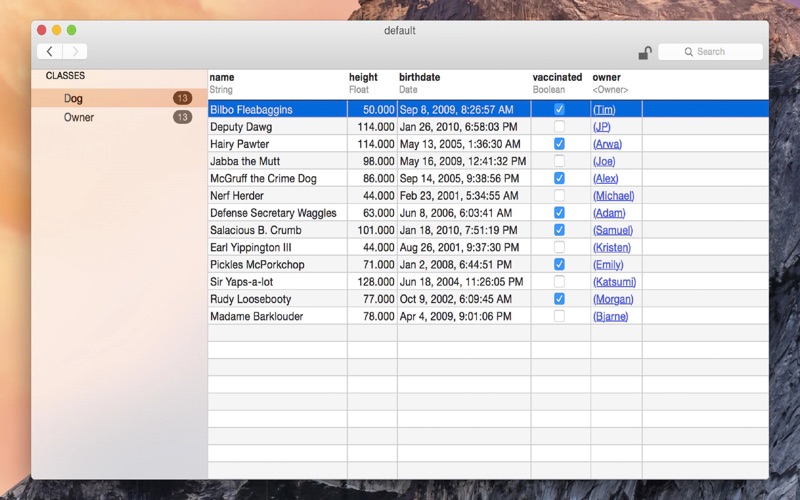 - View all of the objects in a .realm file, filtered by object class.