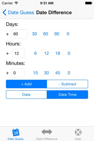 I needed an app to tell me how many hours & minutes between one date, hh mm and another date, hh mm. This works just fine for that. I then need to add X hours and minutes to a date, hh mm. This app does that fine as well. The description of the app doesnt make it clear, but you can subtract dates/times as easily as add. Its quick and easy. Id give it 5-stars if it had more features (like multiply/divide time and the ability to turn on/off dst changes). I was very hesitant to spend the money without reading anyones review, but Im glad I did. Been looking for this type of app for a long time.