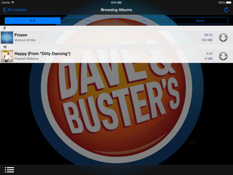 Play the music you redeemed at Dave & Busters Media Store and restaurant.