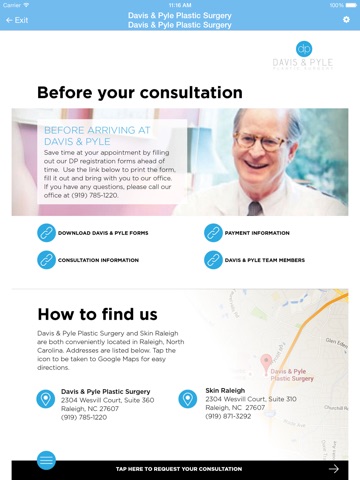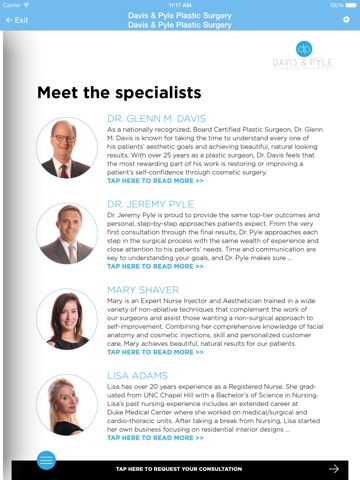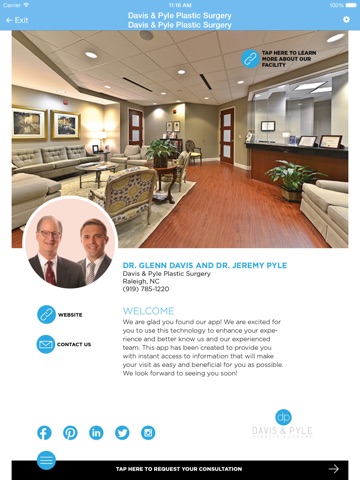 Use this app to help get to know Dr. Glenn Davis and Dr. Jeremy Pyle and their team at Davis & Pyle Plastic Surgery, prior to your appointment, while also providing you with articles on healthy living!
