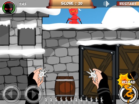 Its winter. Your town is under attack... by ninjas! Hold the line and show your true shuriken skills. They will appear from all sorts of places, so make sure you patrol around. Good luck with the defense.