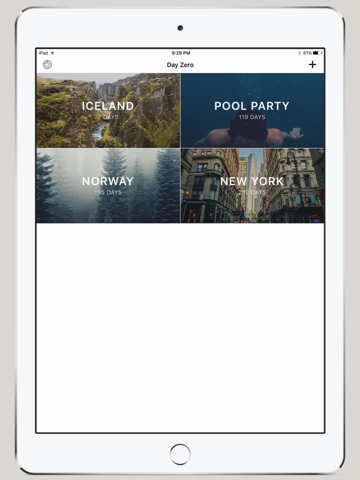 Customize each countdown by adding a background from Day Zeros incredible library or by adding a photo from your own library. Get notified when a countdown passes, see how many days it has been since the event has passed and share your countdowns with friends on Facebook, Twitter, Instagram, and more.