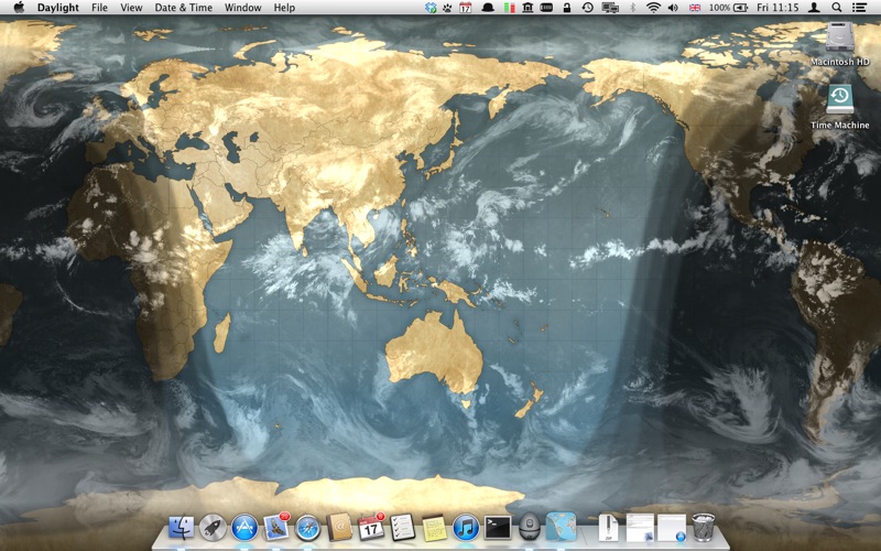 Great graphics, clouds are a nice touch. Some features I would like to see: * Full screen -- I would like to dedicate a monitor to this and just let it run all the time * Smooth shadow bands * Customizable cities -- user selectable cities to show on the map with the local time * Apple event support -- some basic programatic overlay capability for user customization i.e. sporting events (location,time, teams, score), severe weather events, breaking world news by location, mail inbox with mail by location, etc....