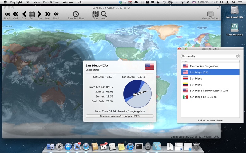 Interessante para quem vai viajar e deseja conhecer sobre as condições de luminosidade do local. É possível saber o horário em que o sol nasce e em que se põe em cada cidade. O programa só falha em não ser compatível com o Snow Leopard.