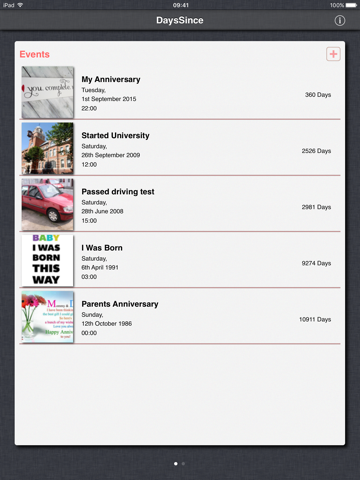 DaysSince keeps track of your past events, providing you with a real time counter displaying the number of years, months, days, hours, minutes and seconds since it happened.