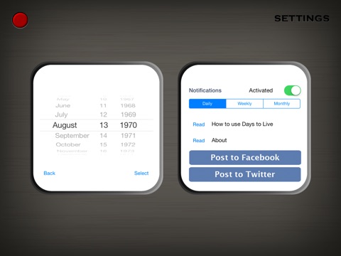 I bought this app because I wanted to have a daily reminder of how many days Ive lived. This app only shows how many days you are expected to live based on an arbitrary death age. Wish this would allow me to also see the days lived which is a fact of life vs the days left to live which is just a fantasy.