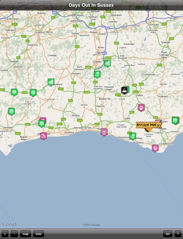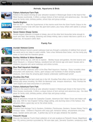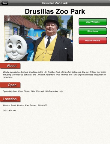 Scroll around the map, press to view the name of the attraction and then select for more detail including: